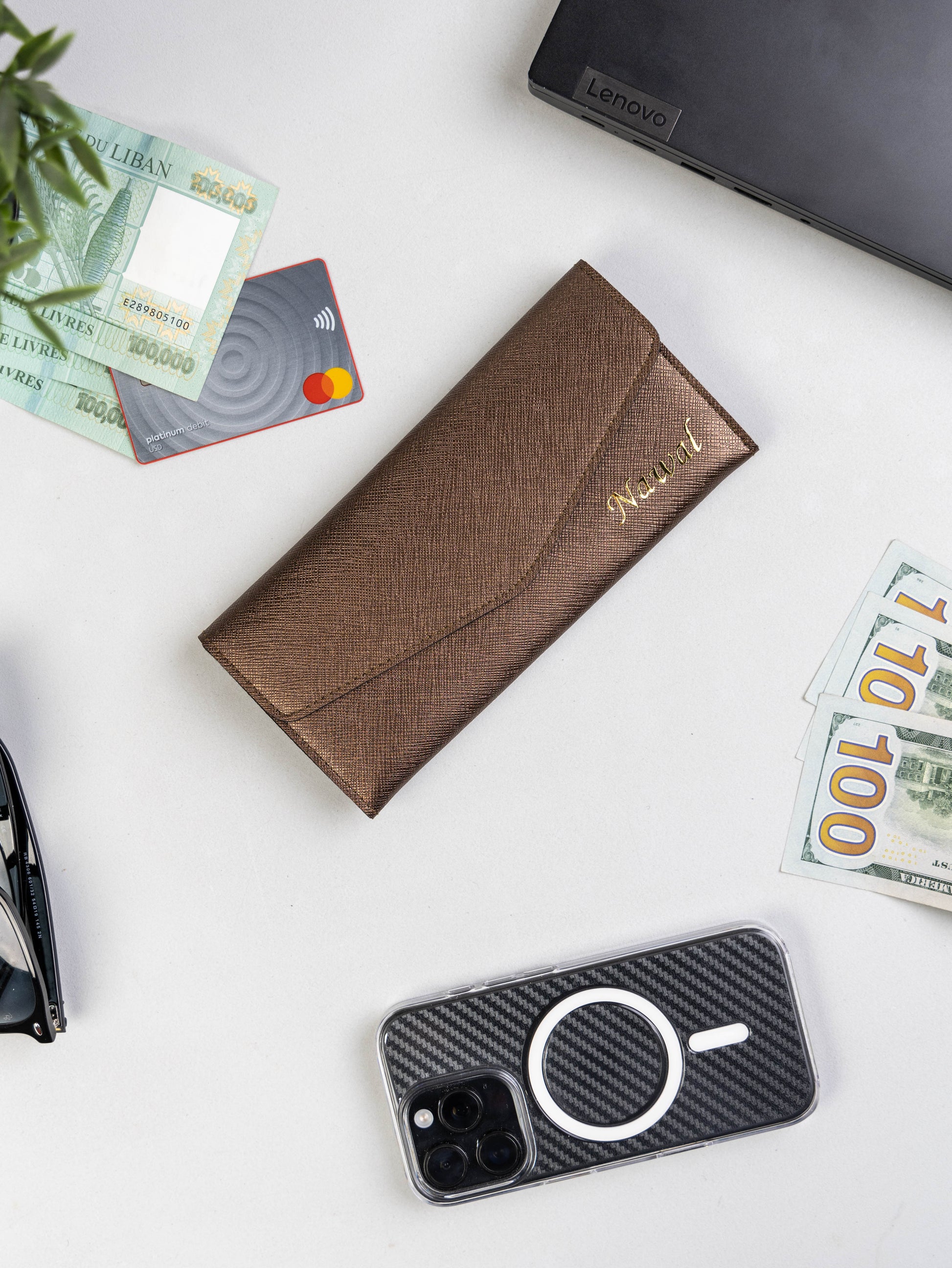 ✔ Customized Long Wallet – Features a long zipper and a spacious pocket for Lebanese banknotes.